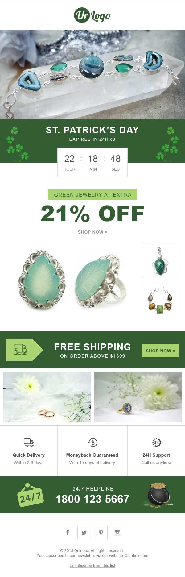 Eye catchy design with 100% hand-coded template tested on 40+ email clients.